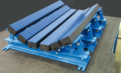 Sandvik impact bars have a top surface of low-friction material and a core of soft impact-absorbing rubber.