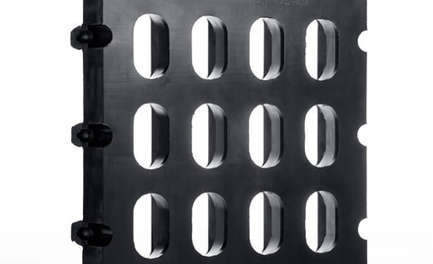 Screenex® injection molded and compression molded rubber screening media products ensure reliable performance 24/7. Also available as fire retardant rubber.