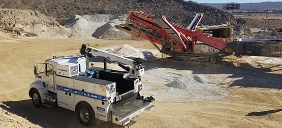 Operating initially with their own mill in Barstow, the material was transported to the quarry for processing. As demand grew, they constructed their own stationary crushing plant built from scrap metal, which enabled them to increase capacity and reduce physical labor. In the late ‘90s, Julie Mann, William’s successor and now President of Brubaker-Mann, decided it was time to invest in new plant to meet further increased demand. She quickly saw the benefits of mobile crushing and screening plant. They were able to move the equipment on site to the quarry face, as well as from quarry to quarry, instead of bringing the material to site. This reduced truck and haulage costs, as well as increasing production capacity and enabling a wider range of materials to be produced.