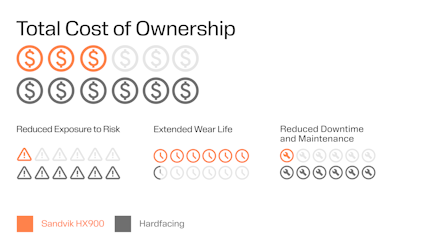 Detta resulterar i längre livslängd, vilket bidrar till den lägsta totala ägandekostnaden (TCO) bland slitdelar på marknaden.